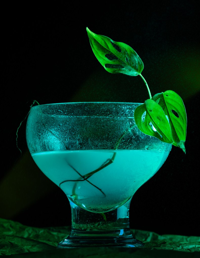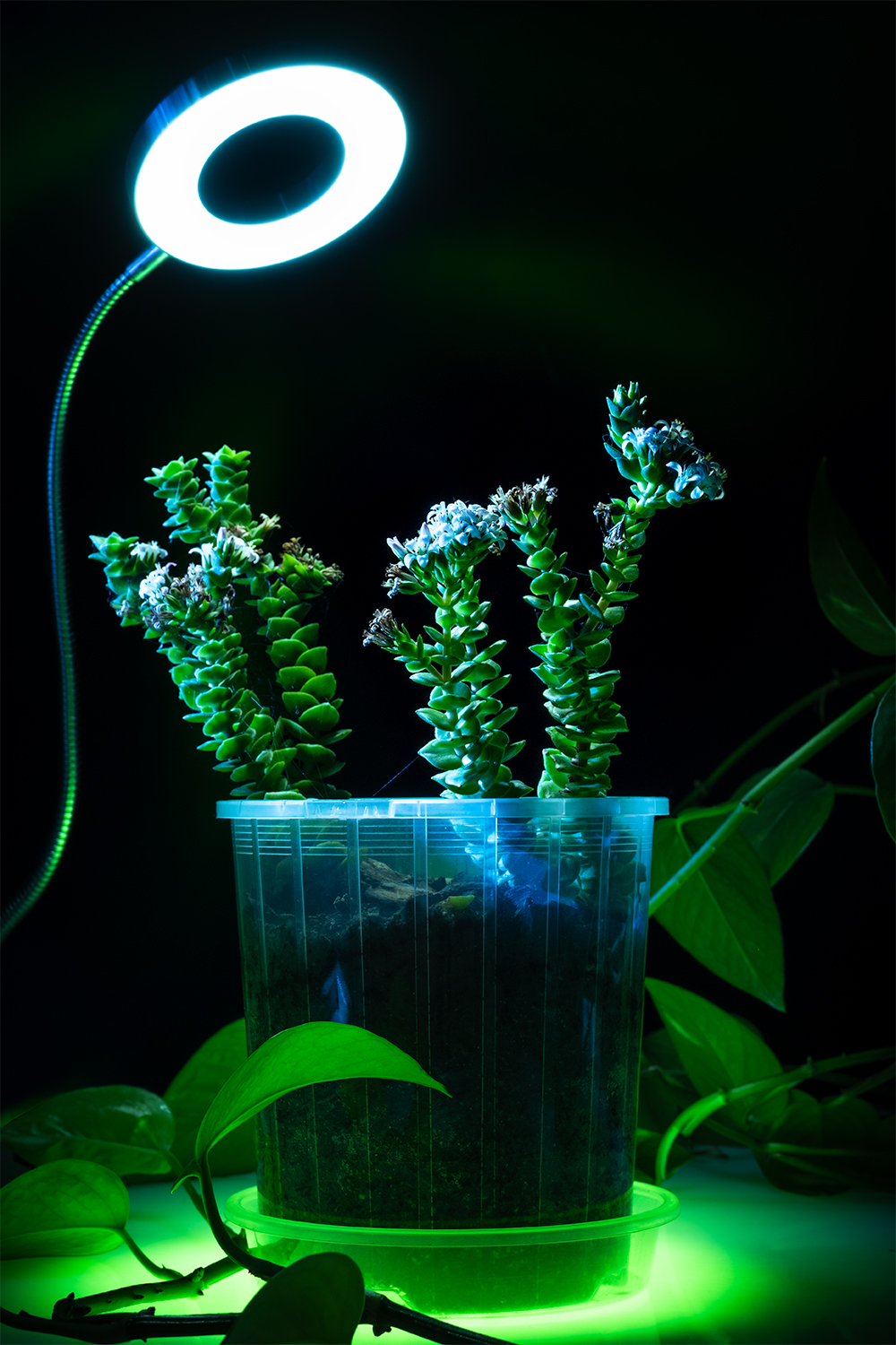 Eventually the folio task came about, and the theme was ‘curves’. Terrariums are often curved, and (in a way) are a miniature of the earth itself, which is also curved. There are glasses, drops, leaves, flowers, mushrooms, and vines that all show curves. Another element is that artificial curves are weird, in a way. We think of artificial things being straight and regular, so it can look strange when something artificial tries to mimic nature – for example, the curved lamp, which wouldn’t look so alien if it had a straight arm. From this I already had ideas for more shots.
